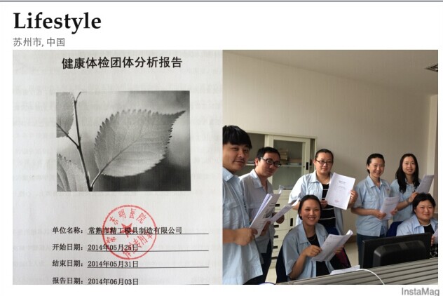 Seiko mould has always been adhering to the "science and technology is popular the factory, people-oriented" business philosophy, the staff is the guarantee of enterprise healthy and sustainable development, caring staff of the health of a company is to, seiko mould in May 2014 for this organization, the staff are divided into two group of comprehensive physical examination.